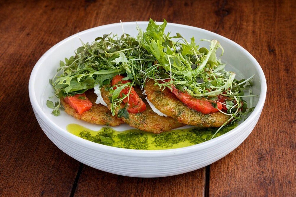 Драники с яйцом и беконом